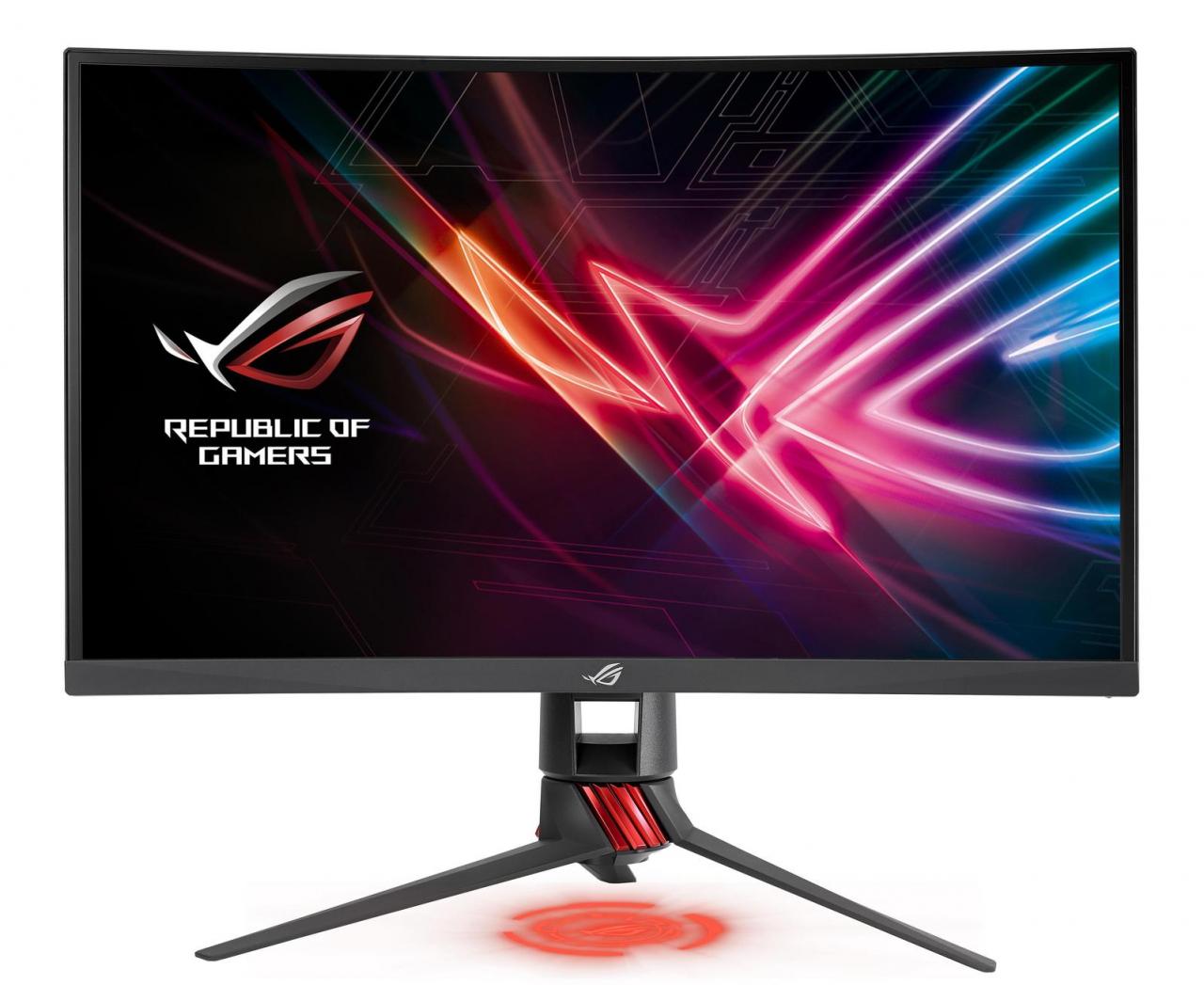 ASUS ROG Strix XG27VQ (27″) 68,47 cm Curved-LED-Monitor (Full HD, 1920×1080, VA, 4ms, DVI-D, HDMI, DisplayPort) Der ROG Strix XG27VQ verbindet eine butterweiche Darstellung mit großartiger Gaming-Optik, um ein unglaubliches Gaming-Erlebnis zu bieten! Er ist der absolut beste Gaming-Monitor für professionelle Gamer und MOBA-Enthusiasten. Der Strix XG27VQ ist ein Full-HD Curved-Gaming-Monitor mit einer beeindruckenden Bildwiederholfrequenz von 144Hz. Er verfügt über die ASUS-exklusive Extreme Low Motion Blur- und Adaptive-Sync(FreeSync™)-Technologien für unglaubliches Gameplay ohne Tearing und Ruckeln. In das inspirierende Gaming-Design ist die ASUS Aura RGB-Beleuchtung integriert, die jedes Gaming-System oder jede LAN-Party in die richtige Lichtstimmung versetzt. Curved Design für den Sieg Der 68,58cm (27&ldqu…