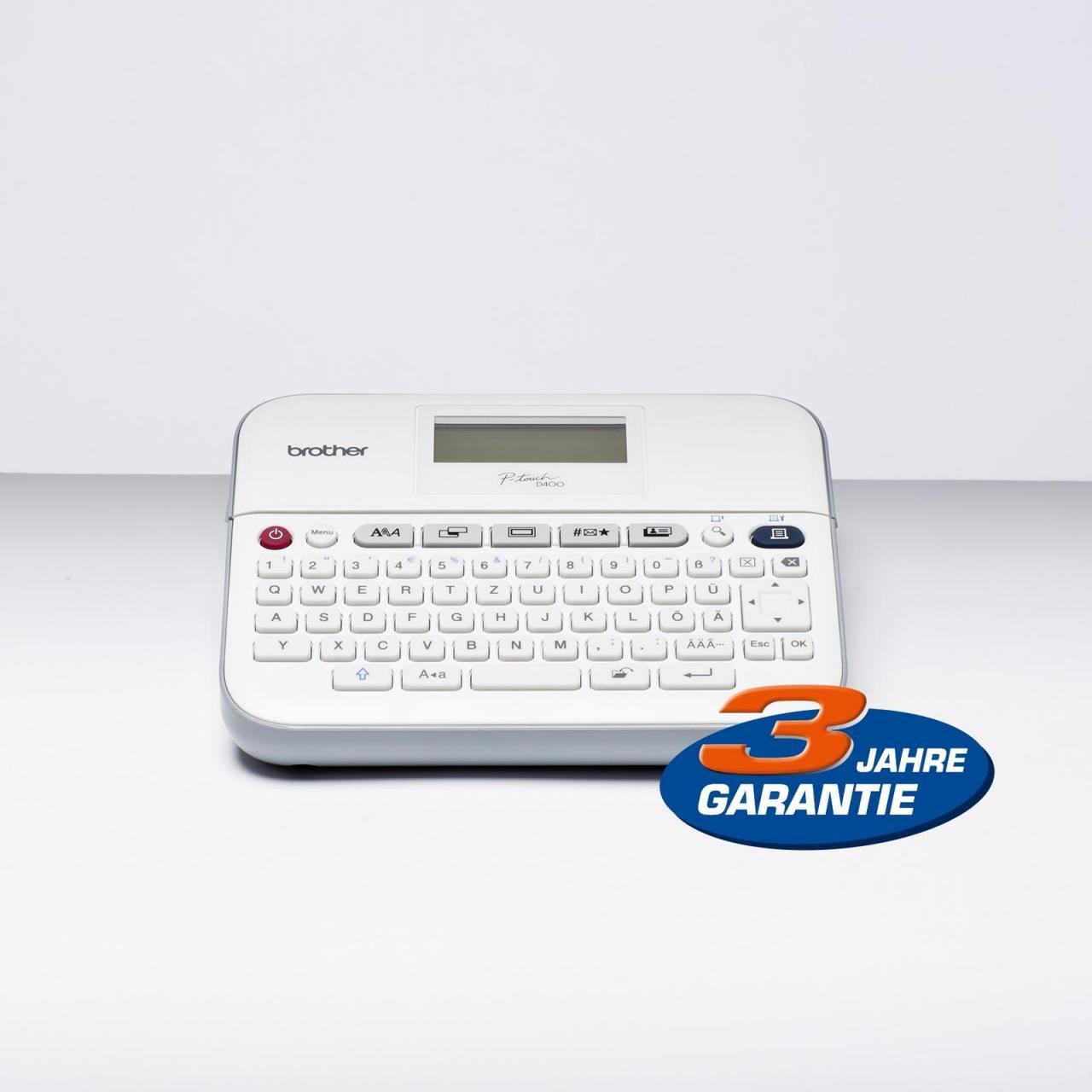 Der PT-D400VP wird inklusive einer Schriftbandkassette und Batterien ausgeliefert. Unter Zuhilfenahme verschiedenster Gestaltungselemente wie Muster, Rahmen oder Schriftstile können individuelle Etiketten erstellt werden. Zur Eingabe des Textes stehen 825 Zeichen und 617 Symbole über die QWERTZ-Tastatur zur Verfügung. Häufig verwendete Symbole können zudem über die Symbol-Historie schnell wieder aufgerufen werden. Funktionen wie der Barcodedruck, Nummerierung oder Mehrfachausdruck machen das Gerät zu einem verlässlichen Partner für die verschiedensten Anwendungen. Die Druckgeschwindigkeit von 20 mm pro Sekunde bei einer maximalen Druckhöhe von 15, 8 mm ermöglicht die effiziente Erstellung von dauerhaften Beschriftungen.