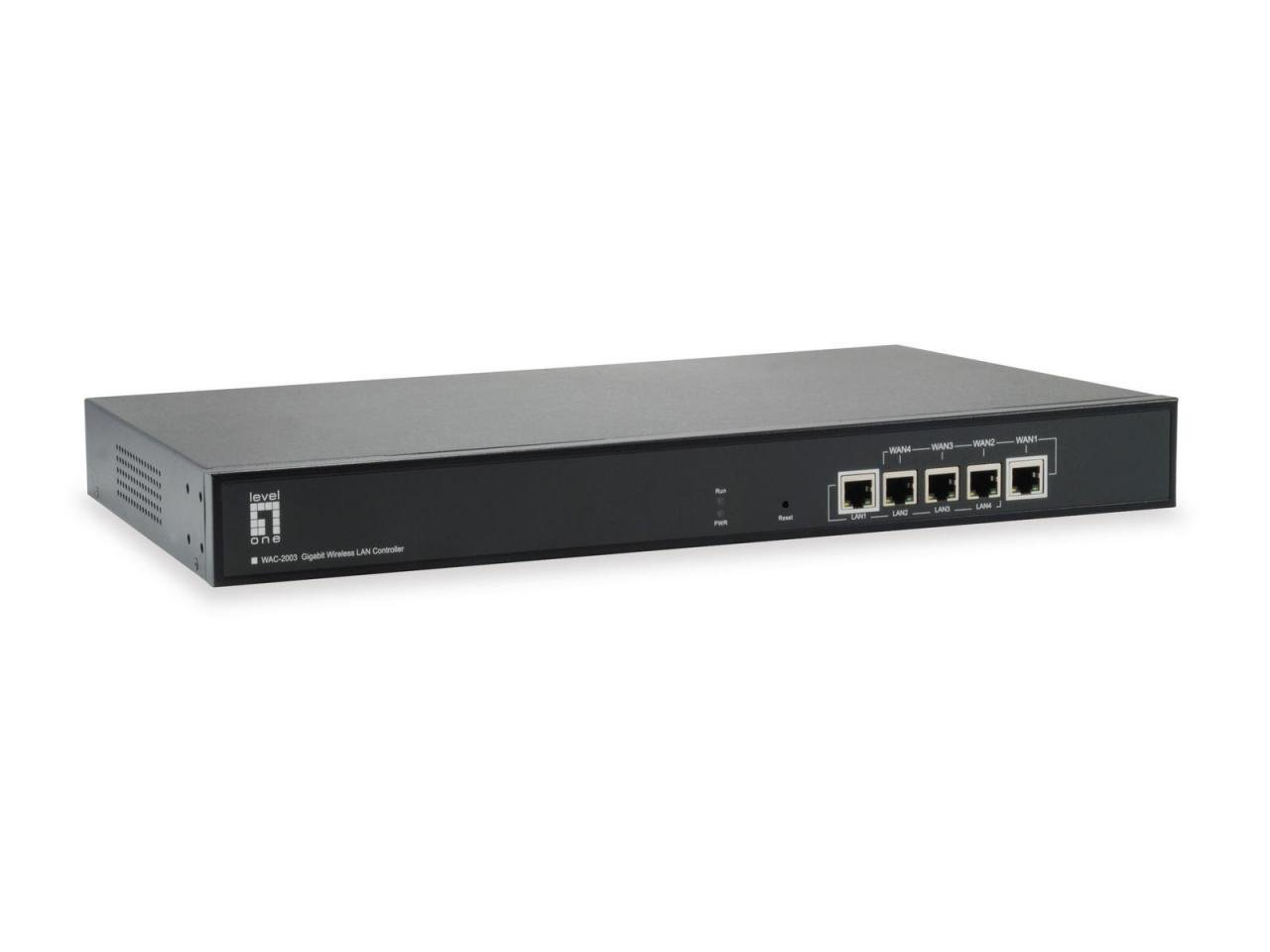 LevelOne WAC-2003 Gigabit Wireless LAN Controller, Quad WAN Der LevelOne WAC-2003 ist ein Gigabit-WLAN-Controller konzipiert für den Einsatz in mittelgroßen bis großen Netzwerken in Unternehmen, Schulen, Campingplätzen, Hotels und Residenzen. Die zentrale Verwaltung von bis zu 300 APs bietet komplette drahtlose Sicherheits- und Verwaltungslösungen für jedes anspruchsvollere drahtlose Netzwerk. Der WAC-2003 integriert eine Vielzahl von Funktionen mit denen der Administrator auf einfache Weise die AP-Konfiguration, einschließlich tagbasierter VLAN-Einstellungen, aufbauen, die AP-Firmware aktualisieren und den AP-Status sowie die Anzahl der angeschlossenen APs und Benutzer überwachen kann. Der WAC-2003 Controller ist auch ein Internet-Gateway mit robuster Firewall zum Schutz vor Eindringlingen, 1 WAN-, 1 LAN- sowie 3 frei konfigurierbare W…